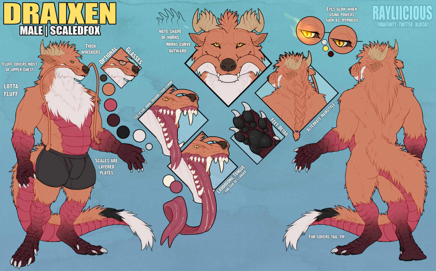Owner and creator of Draixen the ScaledFox, I also have several other characters! Easiest way to see them is on FurAffinity where I have them all organized into folders~ I am an avid fan of artwork tending to support many creators and purchasing quite a lot of commissions. I do dabble in drawing myself and am learning a lot but still a beginner! (🔞Link's listed below).